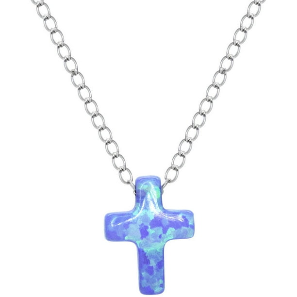 American Designs Sterling Silver Jewelry Created Opal Petite Blue Cross Necklace 16 Chain Walmart Com Walmart Com