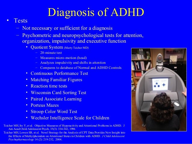 Two recent functional magnetic resonance imaging fMRI studies have used cued reaction time tasks to assess differences between adults with a childhood diagnosis of ADHD andcontrols in task-relatedactivations. A Delphi consensus study. There is not a single definitive test to determine if your child has ADHD because there is no single marker of ADHD.