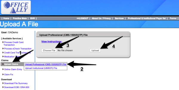 Uploading An Edi File To Office Ally Jane App Practice Management Software For Health Wellness Practitioners